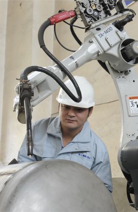 2臺(tái)松下焊接機(jī)器人,高脈沖焊接,無飛濺,自動(dòng)化程度高,焊縫美觀